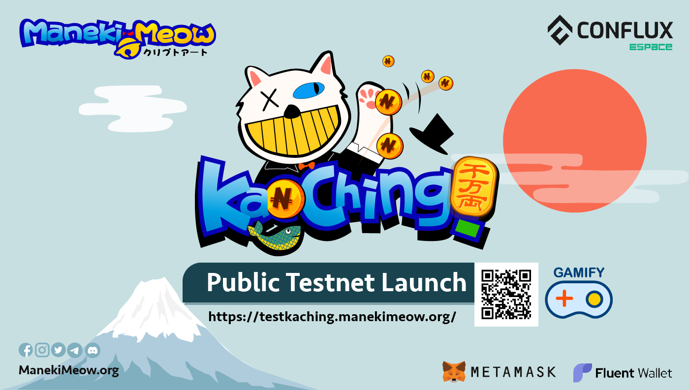 Be the first person to experience and participate in Ka-Ching(eSpace testnet), to beckon some NEKO tokens, and win away real 1,000 Neko tokens (eSpace Mainnet).